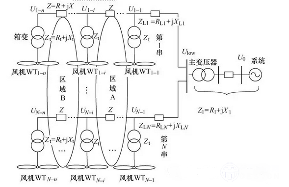 圖1風(fēng)電場集電系統(tǒng)典型接線