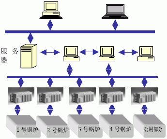 現(xiàn)場控制層完成對鍋爐和系統(tǒng)公共部分的數(shù)據(jù)采集及控制;車間監(jiān)控層設(shè)置兩臺操作員站、一臺工程師站。操作員站采用研華奔騰工業(yè)控制微機(jī),主要用于鍋爐系統(tǒng)的數(shù)據(jù)顯示及進(jìn)行控制操作,兩臺操作站同時(shí)工作互為熱備用。工程師站用于進(jìn)行系統(tǒng)參數(shù)設(shè)定及系統(tǒng)維護(hù);工廠管理層為可選的功能,可進(jìn)行系統(tǒng)運(yùn)行分析,數(shù)據(jù)統(tǒng)計(jì)、優(yōu)化等;本系統(tǒng)設(shè)有web服務(wù)器,可通過Internet 瀏覽系統(tǒng)的實(shí)時(shí)數(shù)據(jù),監(jiān)視系統(tǒng)的運(yùn)行狀態(tài)。