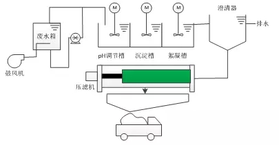 目前世界上應(yīng)用最為廣泛的脫硫廢水處理工藝為化學(xué)沉淀法,其典型工藝如圖1所示,其主要過程如下: