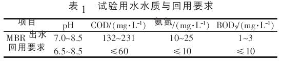 試驗用水為高酸重質(zhì)原油廢水MBR 出水,其水質(zhì)如表1 所示?