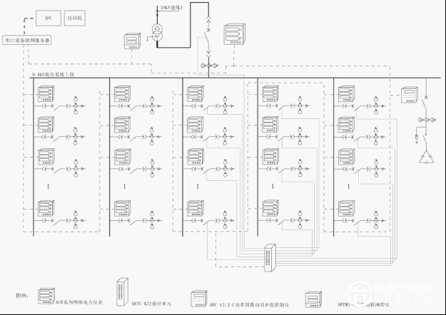現(xiàn)場設(shè)備層是數(shù)據(jù)采集終端,主要是由智能儀表組成(此項(xiàng)目中主要為ACR230ELH電力質(zhì)量分析儀),向數(shù)據(jù)中心上傳存儲(chǔ)的參數(shù)。世博中心場管項(xiàng)目中,例如主進(jìn)線回路的三相電流、三相電壓、有功/無功功率、功率因數(shù)及頻率;電容補(bǔ)償回路的功率因數(shù)、有功、無功功率;聯(lián)絡(luò)回路的三相電壓、電流;普通低壓出線回路的三相電流、功率;重要低壓出線回路的三相電流、有功、無功功率、電壓和電流的2-31次諧波、諧波畸變率(THDi、THDu)等電參量;