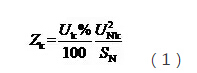 式中:Uk%為短路阻抗百分比,UN為變壓器額定電壓,SN為變壓器額定容量。