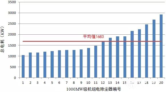 圖3 1000MW級(jí)機(jī)組電除塵器總電耗統(tǒng)計(jì)結(jié)果
