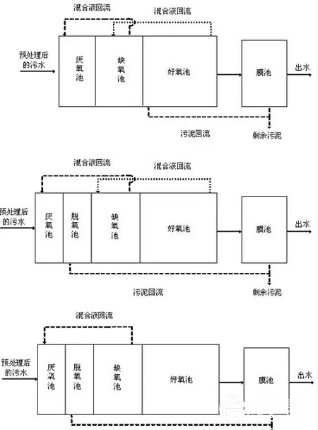 圖1MBR脫氮除磷生化池及回流的布置形式