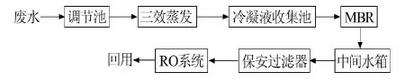 (4) 采用三效蒸發(fā)器、MBR與RO組合工藝,對高含鹽有機廢水進行深度處理,出水水質(zhì)可滿足企業(yè)生產(chǎn)工藝用水水質(zhì)要求,并達到零排放的目的。