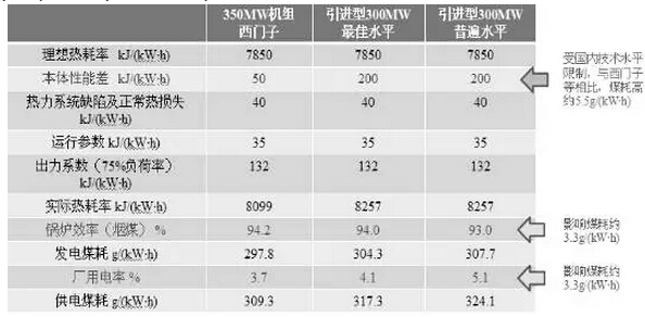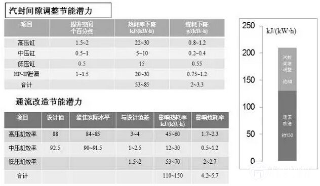 說(shuō)明:目前國(guó)內(nèi)經(jīng)過(guò)通流部分改造后的300兆瓦亞臨界機(jī)組熱耗率水平仍高于理想水平約100千焦/千瓦時(shí),但低于未經(jīng)改造的引進(jìn)型機(jī)組約100千焦/千瓦時(shí),約3.7千焦/千瓦時(shí)。