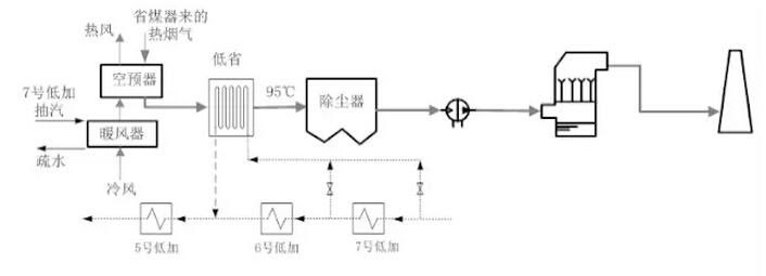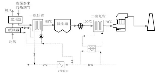 (2)低壓省煤器與暖風(fēng)器聯(lián)合系統(tǒng)。