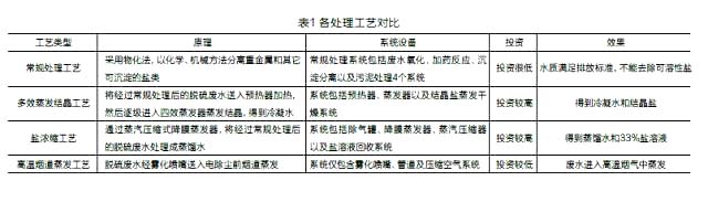 為了有效回收和利用脫硫廢水,在常規(guī)處理工藝的基礎(chǔ)上,國內(nèi)外的專家學(xué)者開發(fā)了脫硫廢水深度處理技術(shù)?,F(xiàn)階段脫硫廢水深度處理技術(shù)主要有3種,分別是:多效蒸發(fā)結(jié)晶工藝,鹽濃縮工藝,高溫?zé)煹勒舭l(fā)工藝。