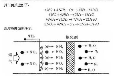 SCR(SelectiveCatalyticReduction)——選擇性催化還原法脫硝技術(shù)是在催化劑(如V2O5-TiO2)作用下,向溫度約280~420℃的煙氣中噴入氨,將NOX還原成N2和H2O。它沒有副產(chǎn)物,不形成二次污染,裝置結(jié)構(gòu)簡(jiǎn)單,并且脫除效率高(可達(dá)90%以上),運(yùn)行可靠,便于維護(hù)等優(yōu)點(diǎn)。