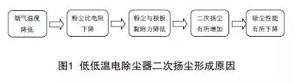 低低溫電除塵技術(shù)是指通過熱回收器降低電除塵器入口煙氣溫度至酸露點以下(一般在90℃左右),使煙氣中的大部分SO3在熱回收器中冷凝成硫酸霧并黏附在粉塵表面,粉塵性質(zhì)發(fā)生很大變化,比電阻大幅下降,從而避免了反電暈現(xiàn)象,同時由于煙氣溫度降低致使煙氣量下降,電除塵器電場內(nèi)煙氣流速降低,增加了粉塵在電場的停留時間,比集塵面積提高,除塵效率得以較大幅度的提高。