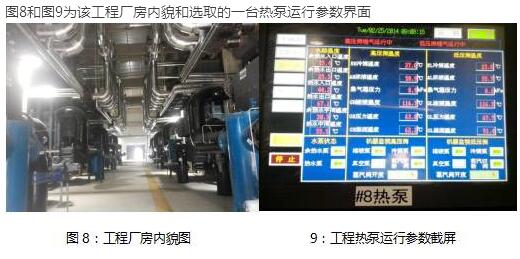 圖8和圖9為該工程廠房內(nèi)貌和選取的一臺熱泵運行參數(shù)界面