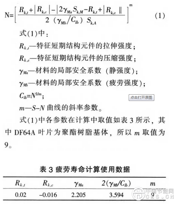 將計算出的單位載荷下的應(yīng)變值乘上載荷幅值得到相應(yīng)循環(huán)載荷作用下的應(yīng)變動態(tài)幅值&.,再將單位載荷下的應(yīng)變值乘上載荷均值得到循環(huán)載荷作用下的應(yīng)變均值S。。利用玻璃纖維復(fù)合材料疲勞壽命計算公式.可以得到疲勞載荷設(shè)計點(diǎn)在疲勞載荷My作用下的疲勞壽命次數(shù)N: