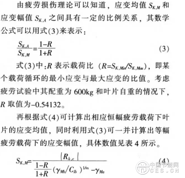 由疲勞理淪分析可知.疲勞載荷設(shè)計點(diǎn)的應(yīng)變均值由葉片自重和配重產(chǎn)生.應(yīng)變動態(tài)幅值由作用在葉片上的動態(tài)激振力產(chǎn)生。所以根據(jù)此對應(yīng)關(guān)系.可進(jìn)一步確定出疲勞試驗時作用在葉片上的動態(tài)激振力。