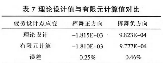 表7給出了根據(jù)疲勞理論計算出的疲勞載荷設(shè)計點(diǎn)應(yīng)變值和有限元計算值之間的對比.