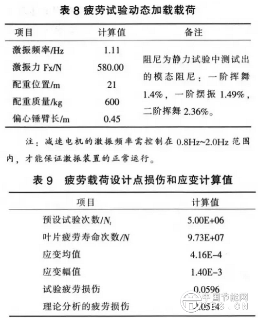 因此.此時需要考慮葉片疲勞動力模型的動力學(xué)放大效應(yīng).經(jīng)過反復(fù)的動力學(xué)模型有限元計算分析.最終確定疲勞試驗動態(tài)加載載荷如表8所示表9是在相應(yīng)疲勞試驗載荷下的疲勞損傷值。