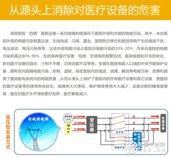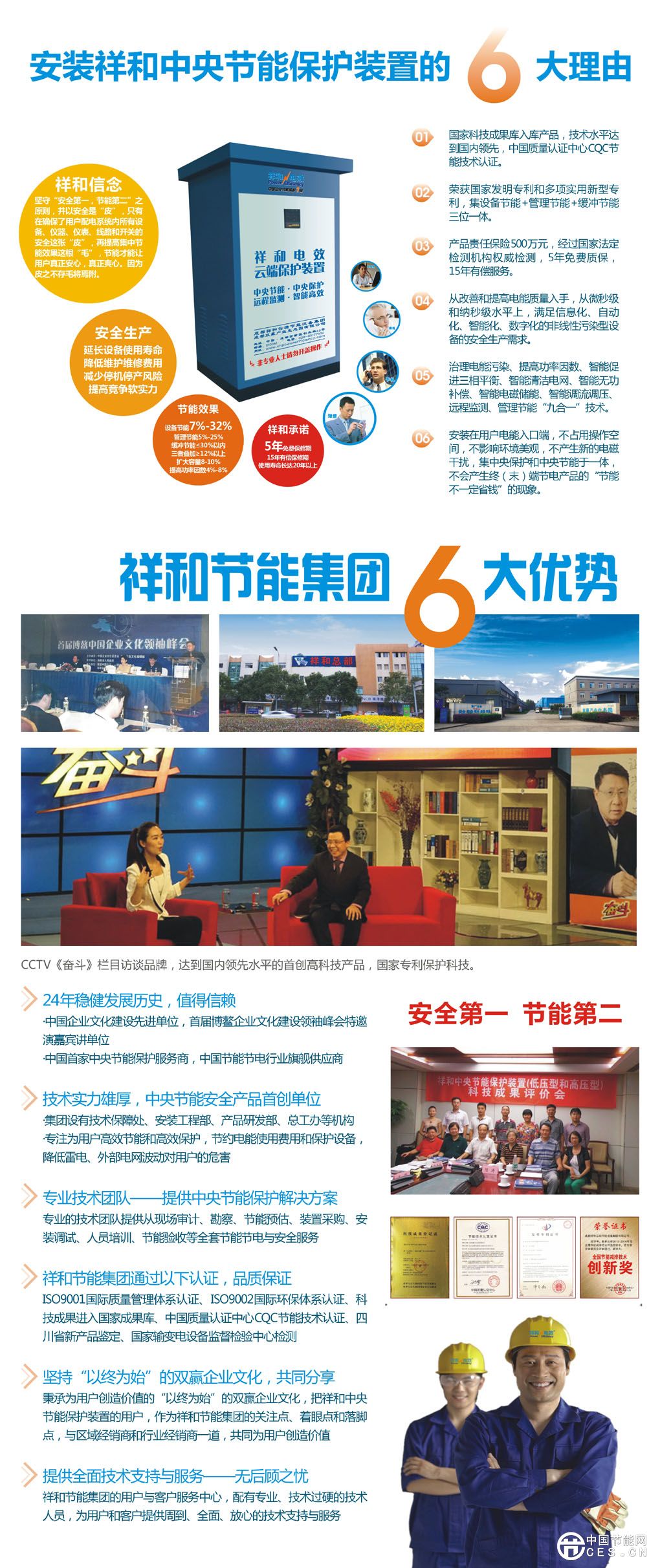 祥和節(jié)能集團(tuán)采用移植創(chuàng)新法和整合創(chuàng)新法,將空調(diào)行業(yè)安裝在前端的中央空調(diào)理念、思路和安裝方法,移植到節(jié)能節(jié)電行業(yè),研制出安裝在醫(yī)院電能入口端的祥和中央節(jié)能保護(hù)裝置。它對醫(yī)院內(nèi)的所有醫(yī)療設(shè)備、儀器、儀表、線路和開關(guān)等,均具有節(jié)能和保護(hù)作用,擁有中央節(jié)能、中央保護(hù)、減排(碳)、清潔電網(wǎng)、遠(yuǎn)程監(jiān)測、管理節(jié)能六大功能,具有高節(jié)能、高保護(hù)、高安全、高可靠、高機(jī)制、高效率六大優(yōu)勢,是全面必、革命性、原始創(chuàng)新節(jié)能與保護(hù),高效科技的結(jié)晶。