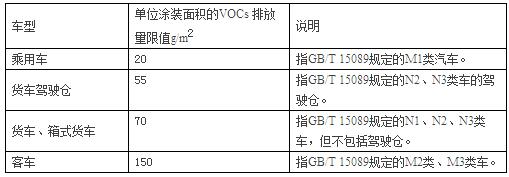 汽車制造涂裝生產(chǎn)線以單位底涂面積核算的VOCs排放總量不應(yīng)超過(guò)表3規(guī)定的限值。