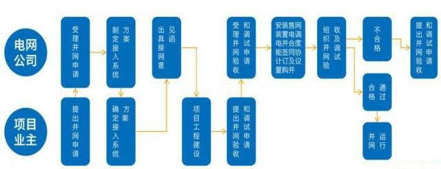 一、提出并網(wǎng)申請(qǐng);二、確認(rèn)接入方案;三、項(xiàng)目備案及工程建設(shè);四、提出并網(wǎng)驗(yàn)收申請(qǐng);五、并網(wǎng)運(yùn)行。