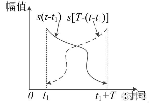 第三步,將提取的有用的暫態(tài)量信號(hào)進(jìn)行時(shí)間反轉(zhuǎn),信號(hào)的時(shí)間反轉(zhuǎn)如圖1所示,s(t-t1)時(shí)間反轉(zhuǎn)后為s[T-(t-t1)]。