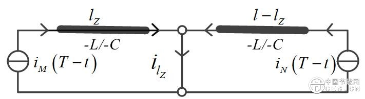 第四步,建立無(wú)損鏡像線路,即圖2中線路的分布式參數(shù)電阻、電導(dǎo)、電感、電容為0、0、-L、-C。將時(shí)間反轉(zhuǎn)后的電流信號(hào)作為電流源串聯(lián)在無(wú)損鏡像線路兩側(cè)。