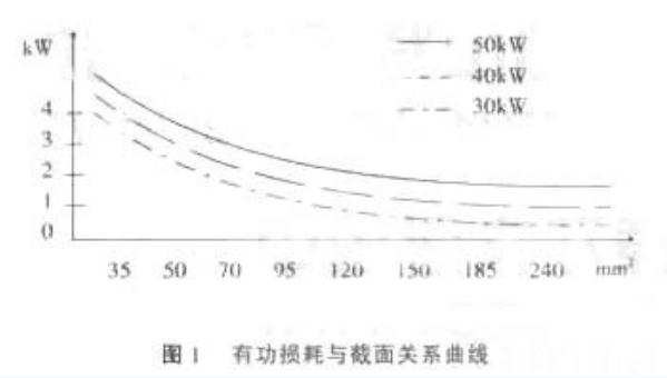 電纜的有功損耗與截面關(guān)系如圖1所示。