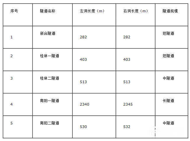 九江至瑞昌高速公路位于江西省九江市境內(nèi),是杭州至瑞麗公路在江西境內(nèi)的一段,是江西省“三縱四橫”公路主骨架網(wǎng)中第一橫的一部分,經(jīng)過九江縣、瑞昌市及廬山區(qū)三個(gè)縣市區(qū)。路線全長(zhǎng)48.144公里,雙向四車道,設(shè)計(jì)行車速度100公里/小時(shí)。全線共設(shè)有五座隧道,除一座長(zhǎng)隧道外,其余均為中、短隧道,各隧道情況見下表: