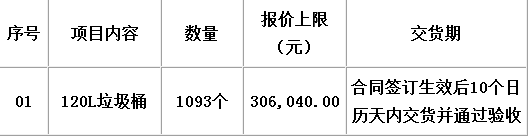 1、項(xiàng)目名稱(chēng):陽(yáng)江市海陵島經(jīng)濟(jì)開(kāi)發(fā)試驗(yàn)區(qū)環(huán)境衛(wèi)生管理所120L垃圾桶采購(gòu)項(xiàng)目;