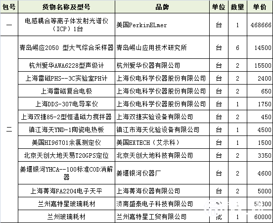一包:電感耦合等離子體發(fā)射光譜儀1臺(tái)(預(yù)算資金:47萬(wàn));二包:智能空氣/TSP綜合采樣器等儀器24臺(tái)(套),玻璃耗材一批(預(yù)算資金:27萬(wàn))。(具體參數(shù)及要求詳見(jiàn)招標(biāo)文件)。