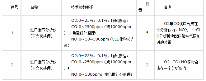 為配套煙氣快速取樣測量系統(tǒng)及常規(guī)SCR性能試驗,采購用于脫硝系統(tǒng)現(xiàn)場煙氣組分(NO/O2/CO)測量的煙氣分析儀。