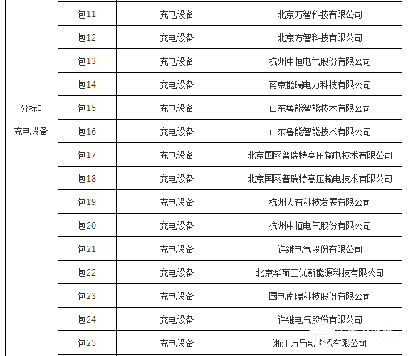 此次,中標(biāo)結(jié)果相對(duì)分散,30個(gè)充電設(shè)備標(biāo)的,共有16家企業(yè)中標(biāo)。其中,許繼電氣、南瑞集團(tuán)中標(biāo)份額最大,含南瑞集團(tuán)的監(jiān)控系統(tǒng),兩企業(yè)共中標(biāo)金額約達(dá)1.8億元。