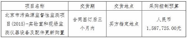 項目名稱:北京市污染源監(jiān)督性監(jiān)測項目(2015)-實驗室和現(xiàn)場監(jiān)測儀器設(shè)備及配件更新購置