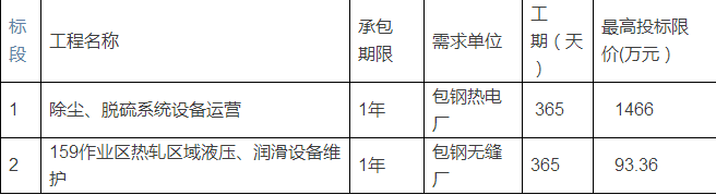 包鋼熱電廠除塵、脫硫設(shè)備、無縫廠液壓、潤滑設(shè)備維護(hù)區(qū)域承包 招標(biāo)公告