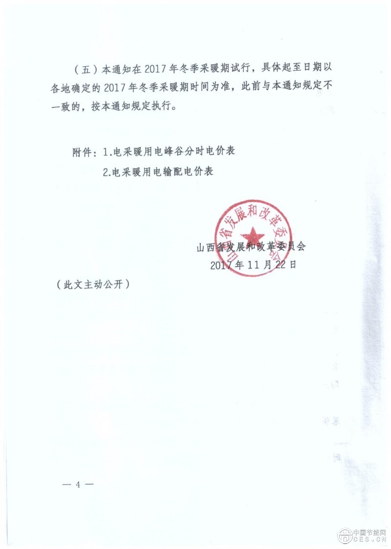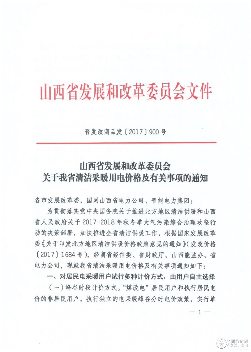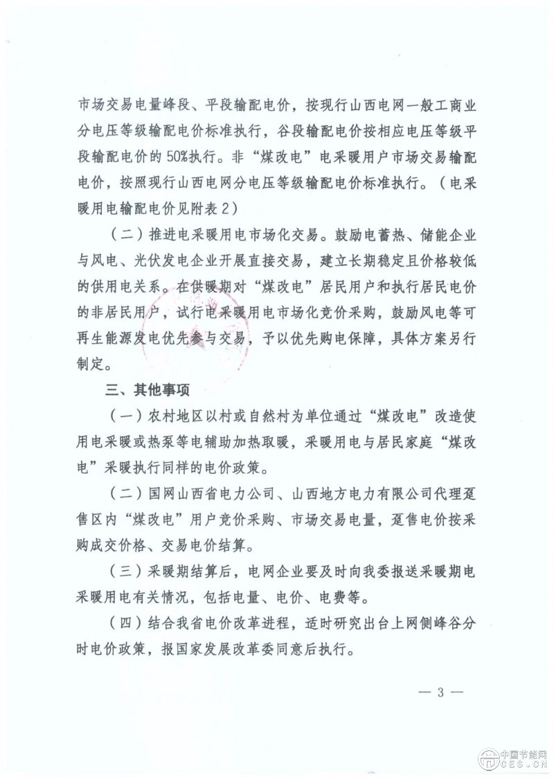 山西省發(fā)展改革委員會《關(guān)于山西省清潔采暖用電價格及有關(guān)事項(xiàng)的通知》