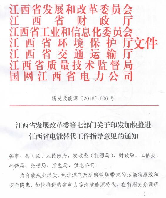 關(guān)于加快推進(jìn)江西省電能替代工作的指導(dǎo)意見