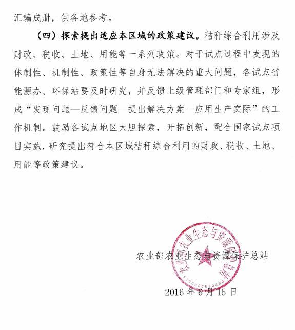 關(guān)于全程開展農(nóng)作物秸稈綜合利用試點技術(shù)支撐的通知