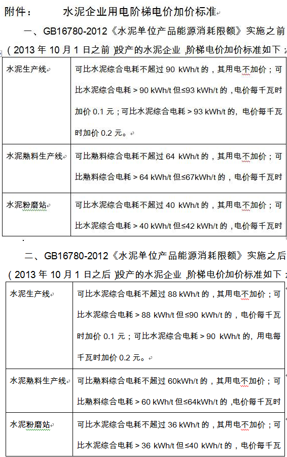 關(guān)于水泥企業(yè)用電實行階梯電價政策有關(guān)問題的通知