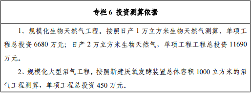 “十三五”期間農(nóng)村沼氣工程總投資 500 億元,其中:規(guī)?;锾烊粴夤こ?181.2 億元,規(guī)?;笮驼託夤こ?133.61 億元,中型沼氣工程 91 億元,小型沼氣工程 59 億元,戶用沼氣 33.3 億元,沼氣科技創(chuàng)新平臺 1.89 億元。