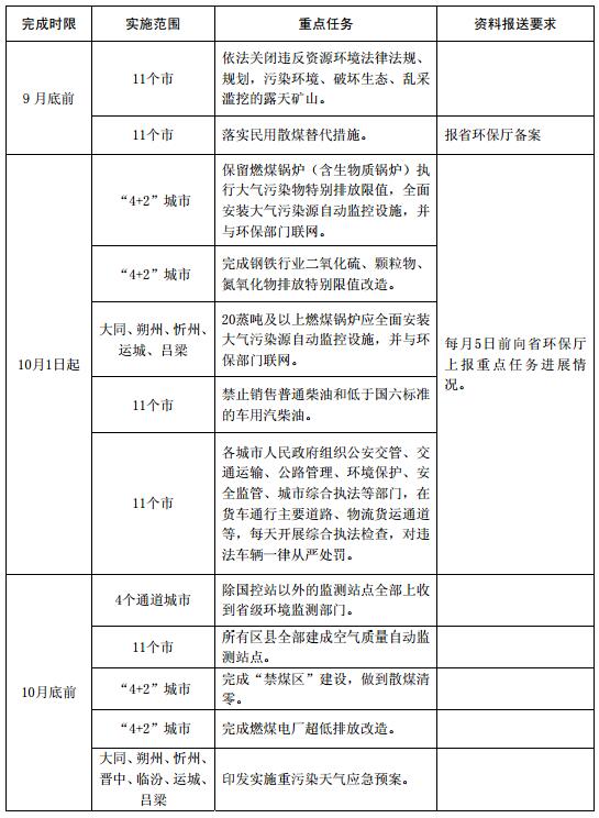 山西省2017-2018年秋冬季大氣污染綜合治理攻堅行動方案
