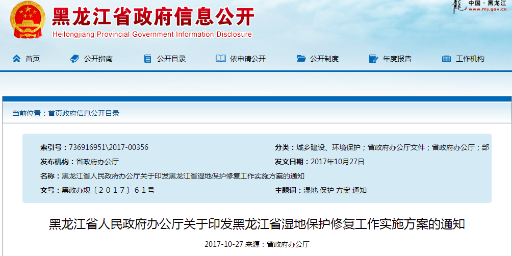 黑龍江省人民政府辦公廳關(guān)于印發(fā)黑龍江省濕地保護(hù)修復(fù)工作實(shí)施方案的通知