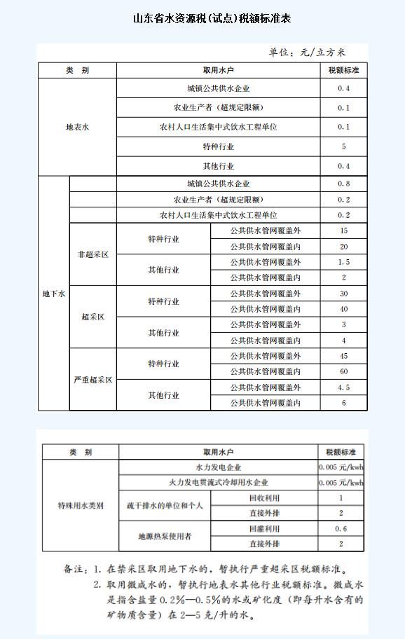具體適用稅額按照本辦法所附《山東省水資源稅(試點)稅額標(biāo)準(zhǔn)表》執(zhí)行。